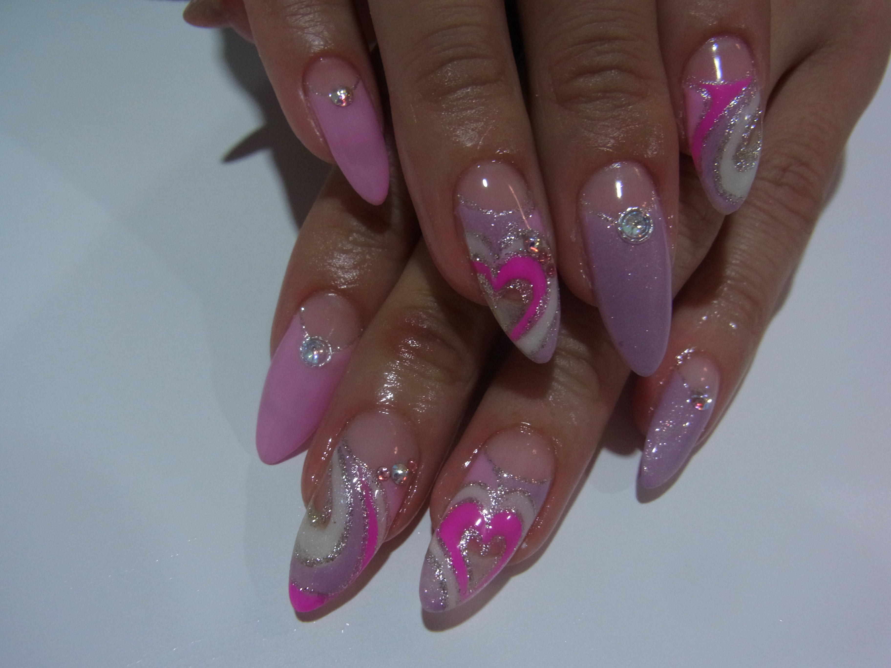 パープル×グレーの美魔女ネイル » « 花×♥くり抜きキュートネイル