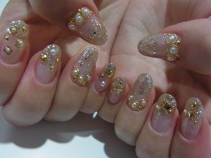 TOP > ネイルデザイン例 > ゴールド×パールのゴージャスネイル