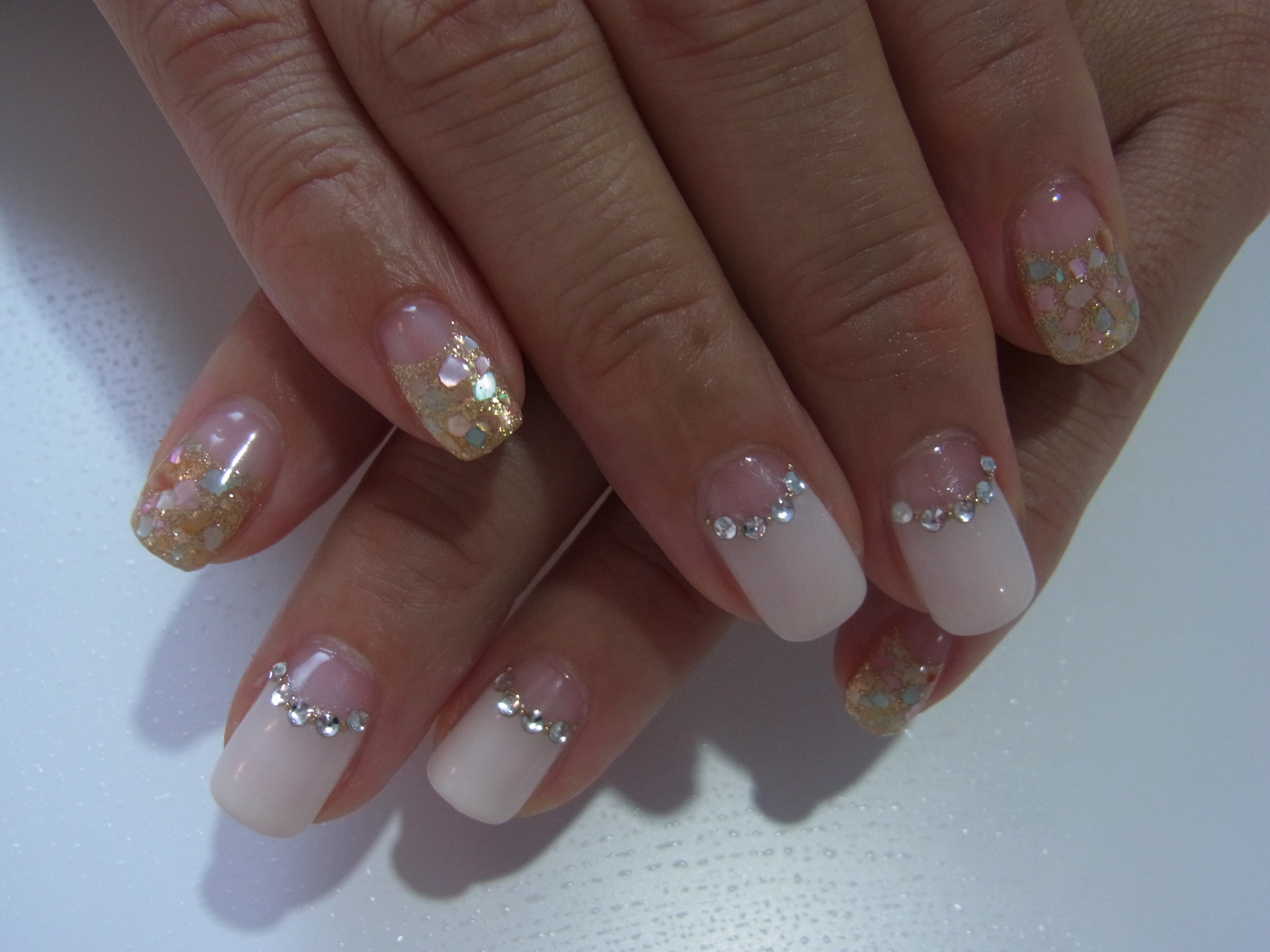 TOP > ネイルデザイン例 > シェル×ストーン大人ゴージャスネイル