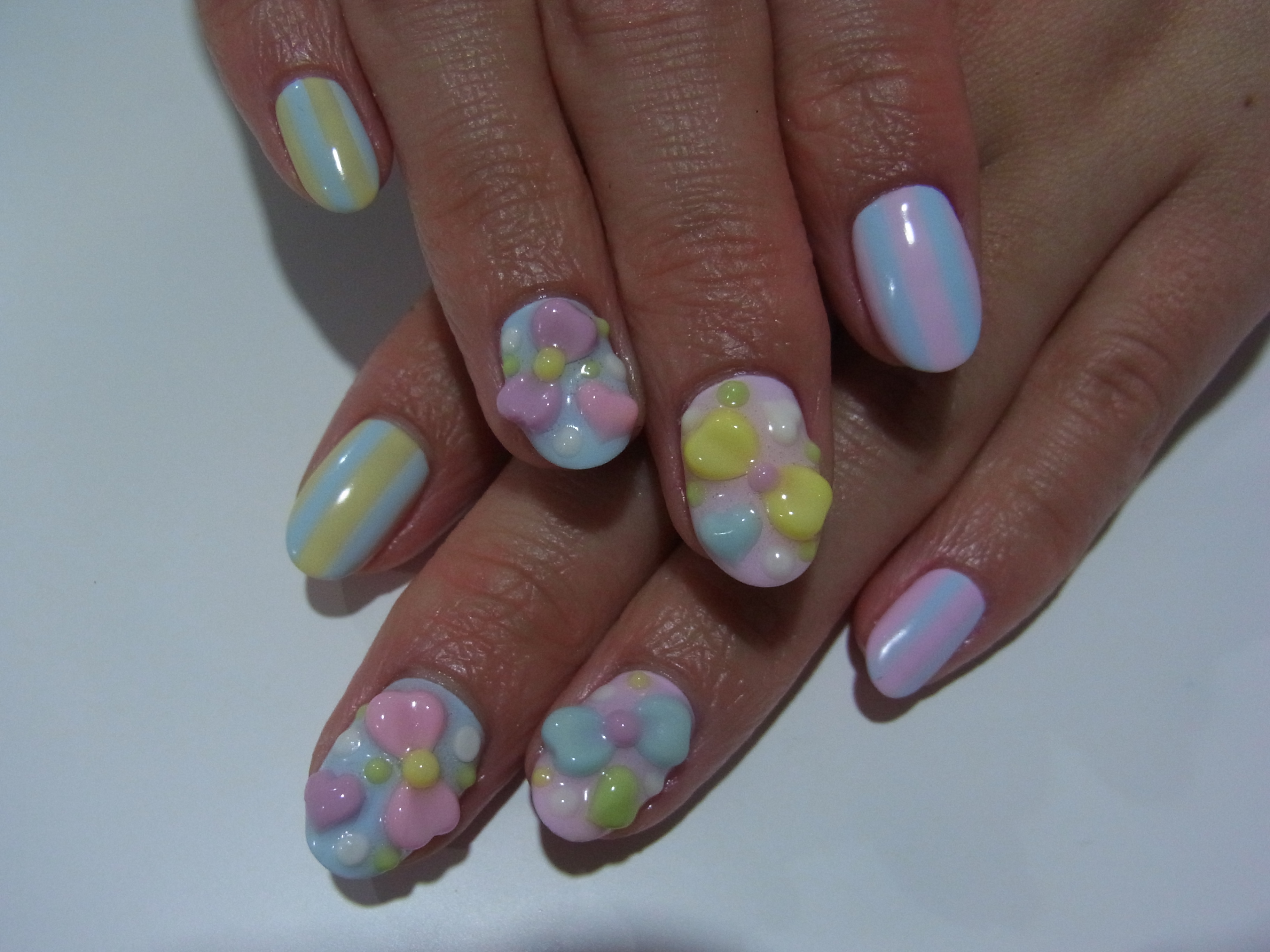 TOP > ネイルデザイン例 > ストライプ×リボンのキュートネイル