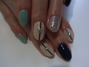 スモーキーカラーとラインシールでトレンドネイルに仕上げました