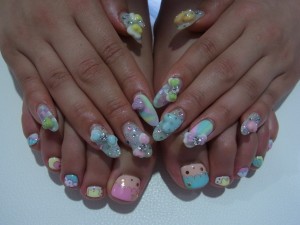手足パステルカラーのキュートなネイルはテンションがあがりますね