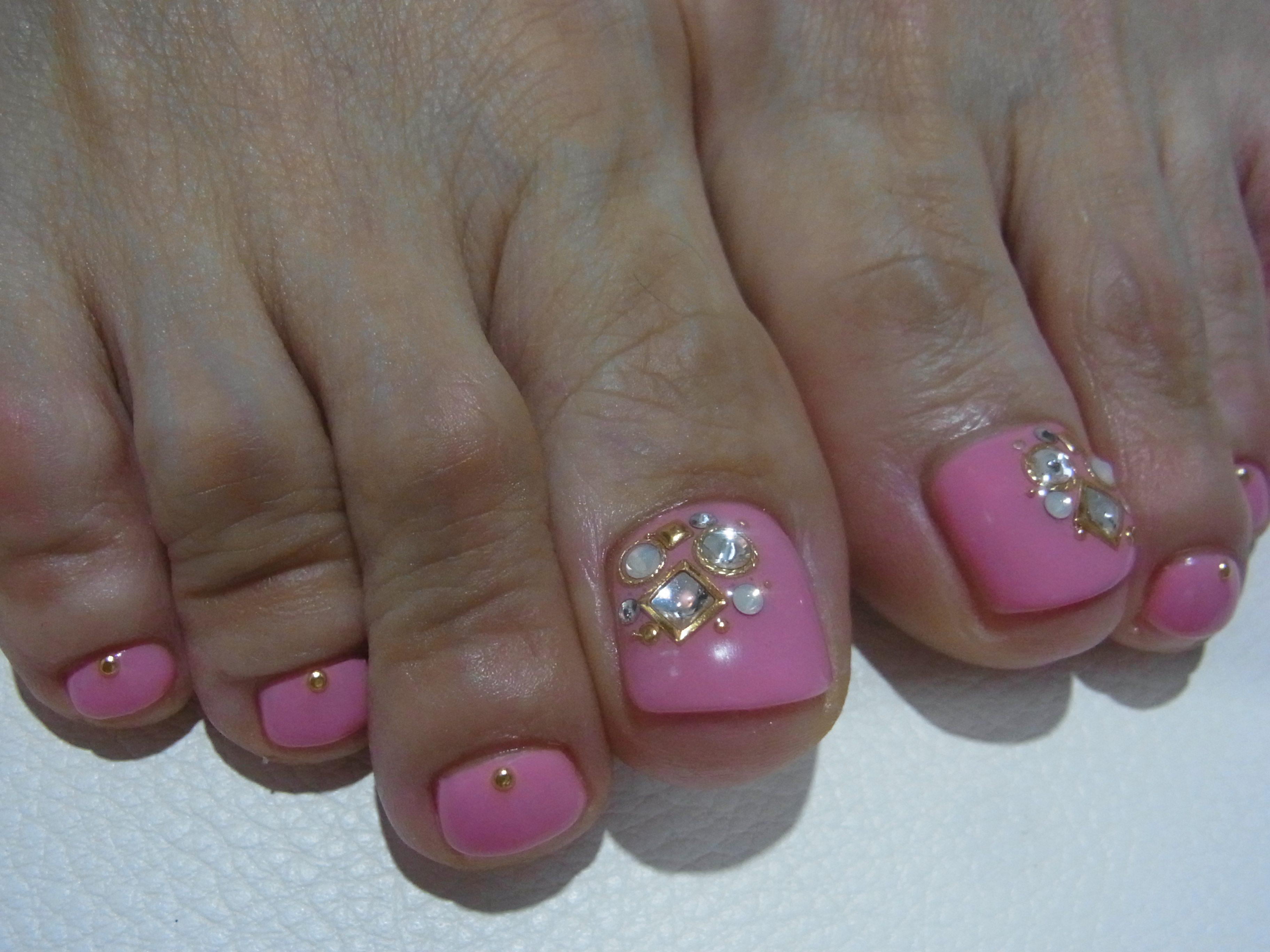 シンプルなピンクベースをストーンでゴージャスに仕上げました。