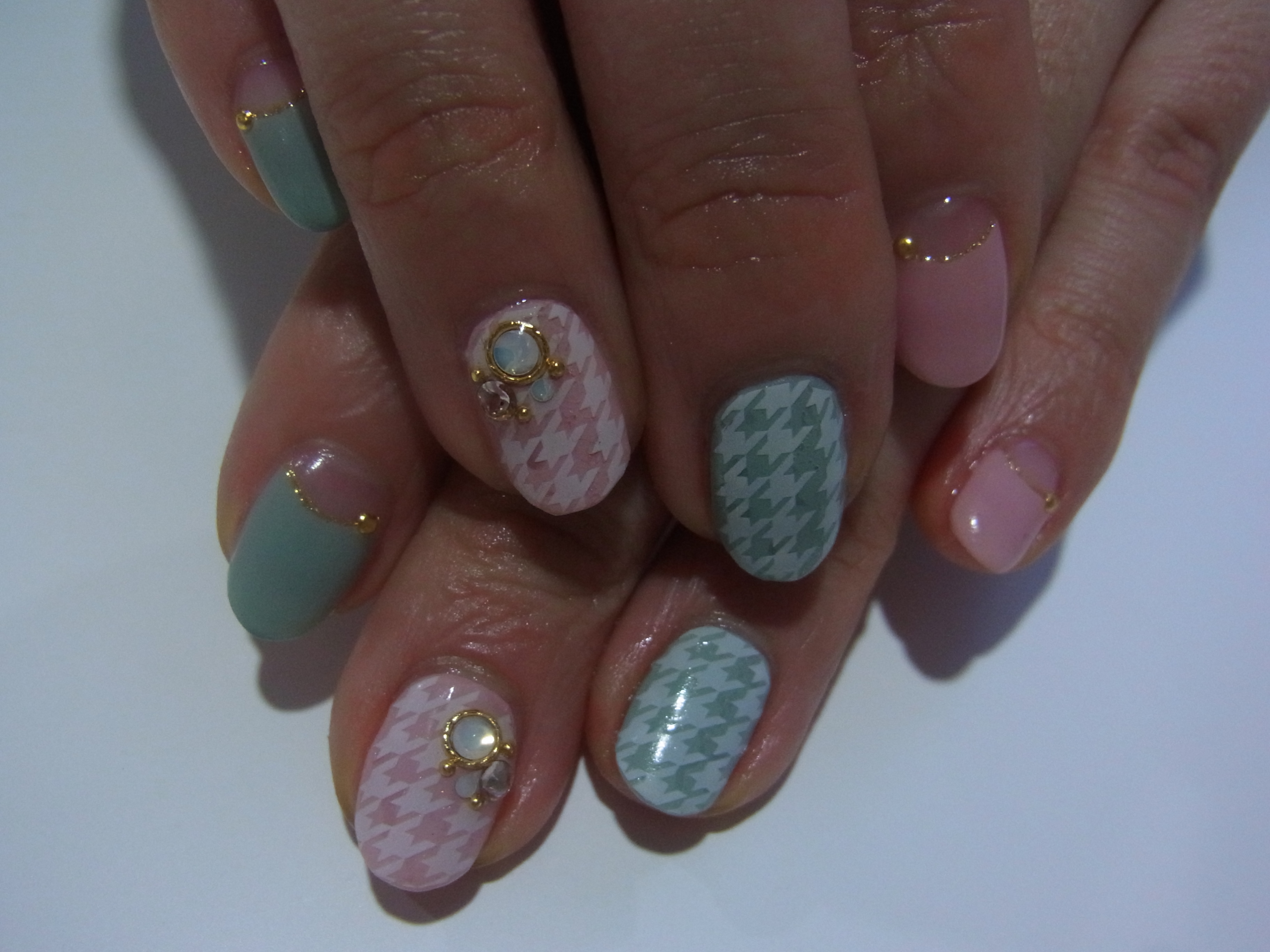 TOP > ネイルデザイン例 > ブルー×ピンクの千鳥ネイル
