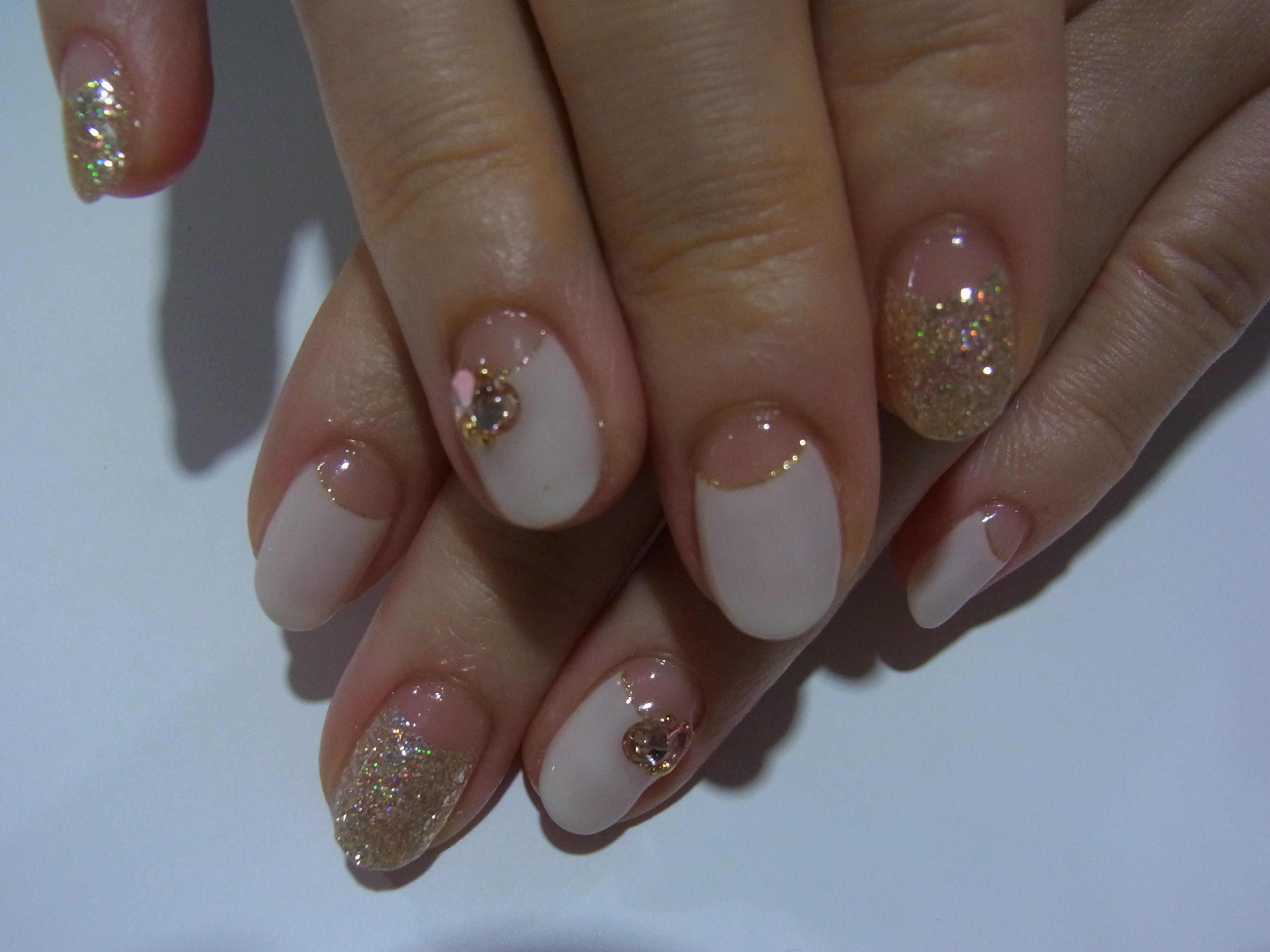ホワイト×ゴールドの逆フレンチでシンプルエレガントに仕上げました