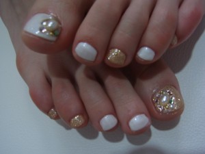 TOP > ネイルデザイン例 > ホワイト×ゴールドのビジューネイル