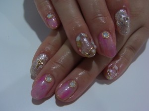 ピンクのマーブルに×シルバーラメでトレンドネイルに仕上げました