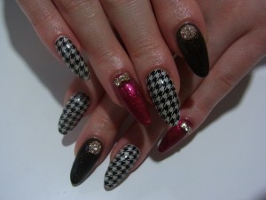 秋冬流行の千鳥格子にピンクとブラックでトレンドネイルに仕上げました