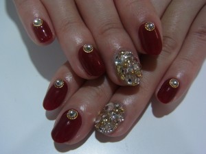 TOP > ネイルデザイン例 > 赤×クリスタルストーンのゴージャスネイル